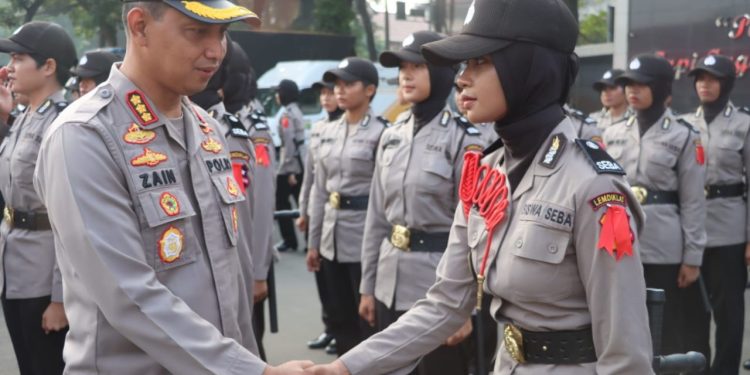 “Hari ini, ada sebanyak 130 polwan mulai melaksanakan latihan kerja di polres, diawali dengan serah terima dari Sepolwan ke Polres Metro Tangerang Kota,” jelas Kombes Pol Zain Dwi Nugroho.