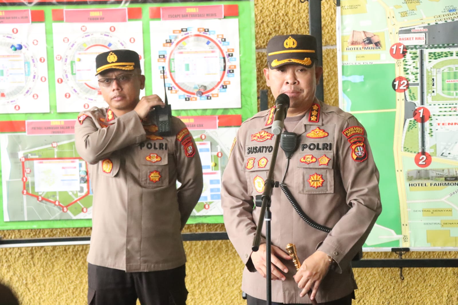 Sementara itu, Kapolres Metro Jakarta Pusat, Kombes Susatyo Purnomo Condro memaparkan, pengamanan terbagi menjadi 3 zona. Antara lain di area luar stadion, area ring road dan area dalam stadion. Penekanan Kapolres kepada seluruh Anggota yang terlibat pengamanan agar melaksanakan Pengamanan dengan persuasif, humanis dan profesional.