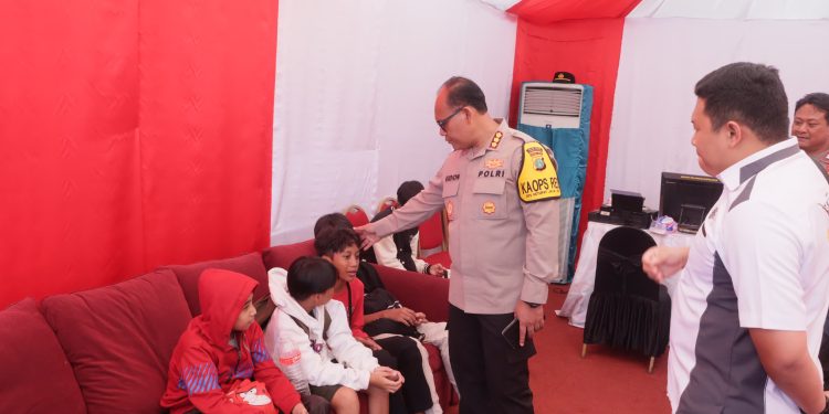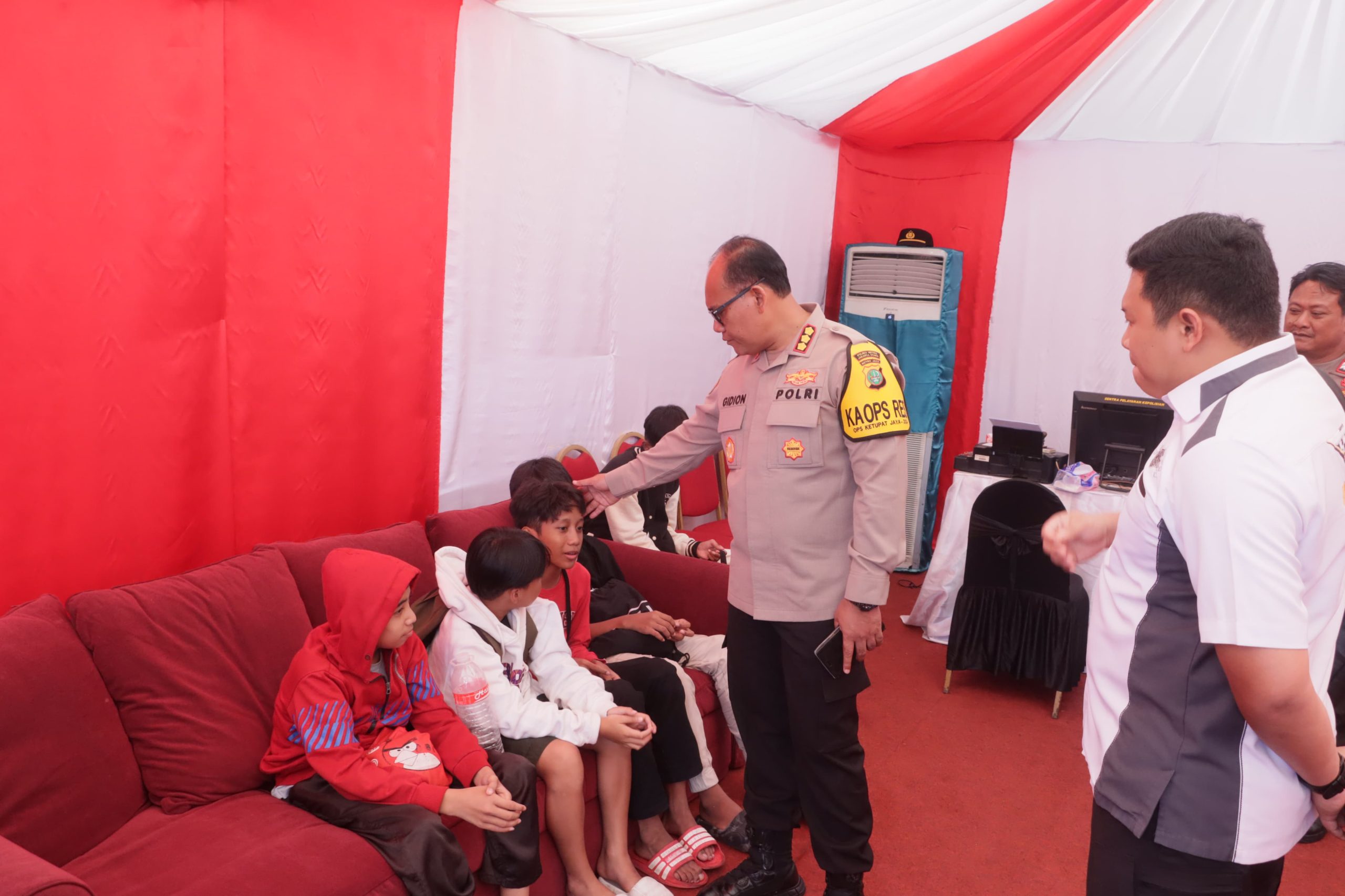 JAKARTA – Kapolres Metro Jakarta Utara Kombes Pol Gidion menerima aduan dua orang bocil (bocah cilik) di pos pelayanan dan pengamanan Ancol, Pademangan, Jakarta Utara, Senin (15/4) siang.