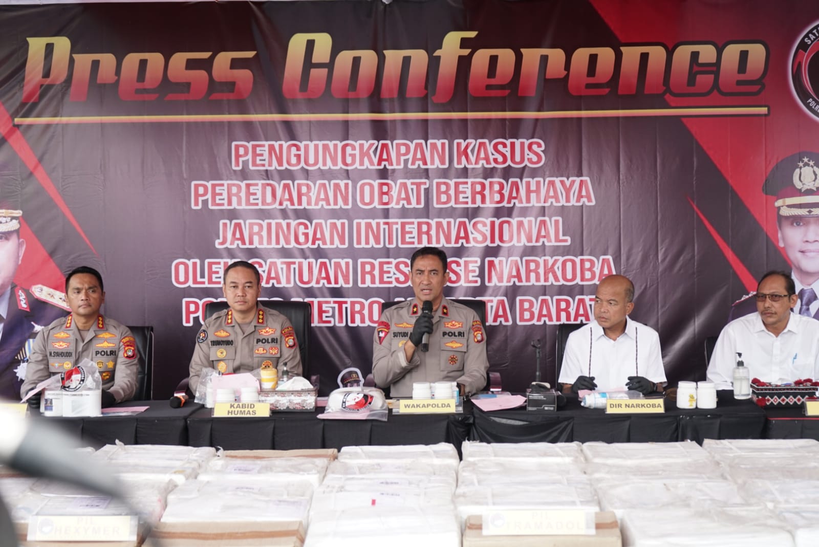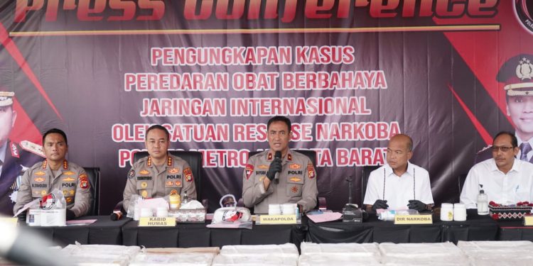 “Obat-obatan ilegal ini dikirim dari India dengan transit ke Singapura dan masuk ke Indonesia melalui jalur laut,” ujar Wakapolda Metro Jaya Brigjen Suyudi Ari Seto, dalam konferensi pers, di Mapolres Jakarta Barat, Rabu (3/5/2023).