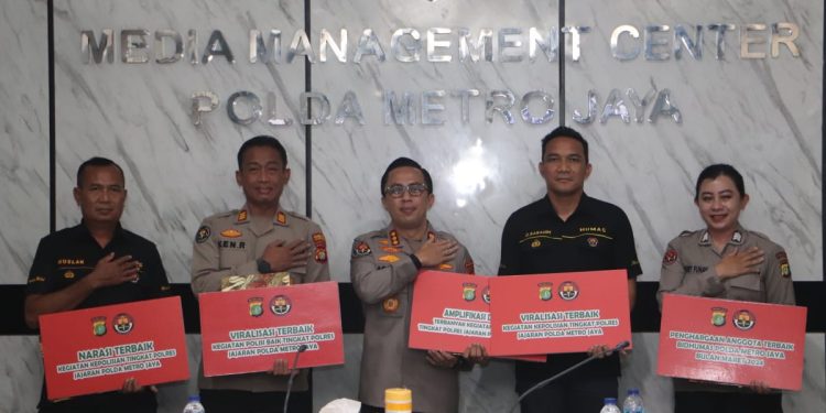Jakarta – Kabid Humas Polda Metro Jaya Kombes Ade Ary Syam Indradi memberikan penghargaan kepada 5 Personel Humas. Penghargaan diberikan kepada Personel berdedikasi yang menunjukkan kinerja baik dalam menjalankan tugas Kepolisian.