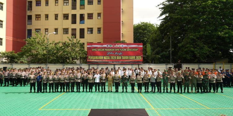 Jakarta Barat, Polres Metro Jakarta Barat bersama 3 Pilar Jakarta Barat melaksanakan Apel Gelar Pasukan dalam rangka Operasi Lilin Jaya 2024 untuk pengamanan Natal dan Tahun Baru di halaman Polres Metro Jakarta Barat, Jumat, 20/12/2024.
