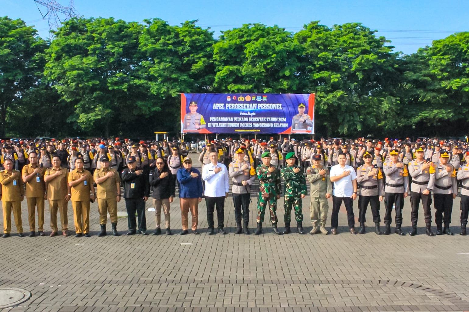 Hadir dalam apel pergeseran personel tersebut Sekda Kota Tangerang Selatan H. Bambang Noertjahjo, S.E. Ak., Wakapolres Tangerang Selatan Kompol Rizkyadi Saputro, S.I.K., Pabung Kodim 0506/Tgr Letkol Udin Rasidin, Para PJU Polres Tangerang Selatan dan Kapolsek Jajaran, Perwakilan Kodim 0510 Tigaraksa, Perwakilan KPUD dan Bawaslu Kota Tangerang Selatan serta Perwakilan KPUD dan Bawaslu Kab. Tangerang.