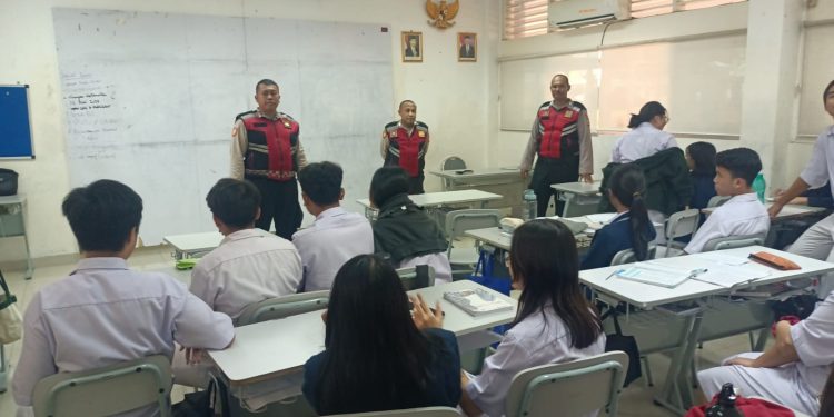 Jakarta – Anggota Unit Samapta Polsek Pulogadung kembali melakukan mitigasi tawuran dengan mendatangi sekolah-sekolah yang ada di wilayah hukum Polsek Pulogadung, Jakarta Timur, Rabu (08-05-2024).