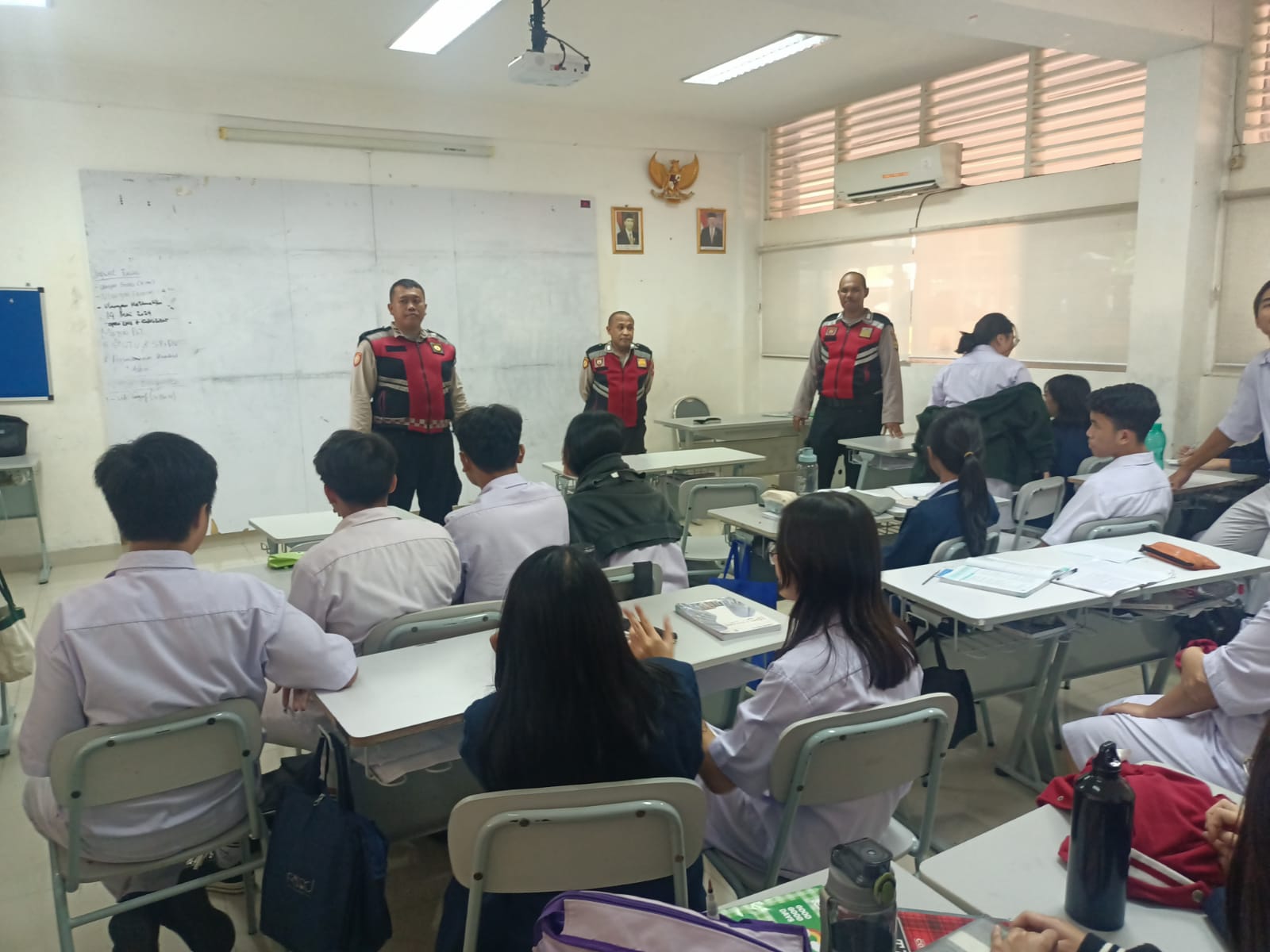 Jakarta – Anggota Unit Samapta Polsek Pulogadung kembali melakukan mitigasi tawuran dengan mendatangi sekolah-sekolah yang ada di wilayah hukum Polsek Pulogadung, Jakarta Timur, Rabu (08-05-2024).