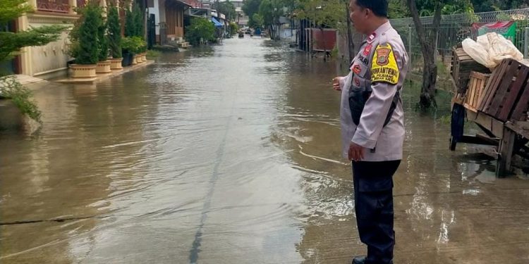 Kegiatan pemantauan yang dimulai pukul 13.30 WIB ini difokuskan di area Perumahan Harapan Indah, khususnya pada lingkungan RT 13, RT 14, dan RT 16 di wilayah RW 17, Kelurahan Pejuang. Personel yang bertugas di lapangan, Aiptu Slamet SA dan Bripka Dwi Feriyanto, S.H., menyisir area yang mulai terdampak luapan air.