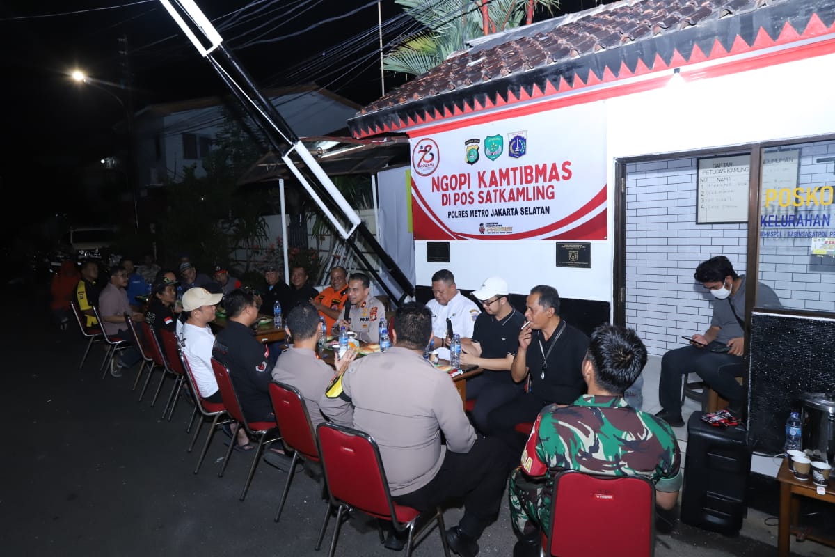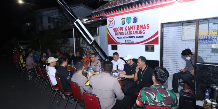 Jakarta – Kapolsek Mampang Kompol David Y. Kanitero S.I.K., M.Si., bersama jajaran Polsek Mampang melaksanakan kegiatan Ngopi Kamtibmas di Poskamling Komplek Bapenas Rt. 001/01 Kelurahan Tegal Parang, Kecamatan Mampang Prapatan, Jakarta Selatan. Sabtu (20/7/2024).