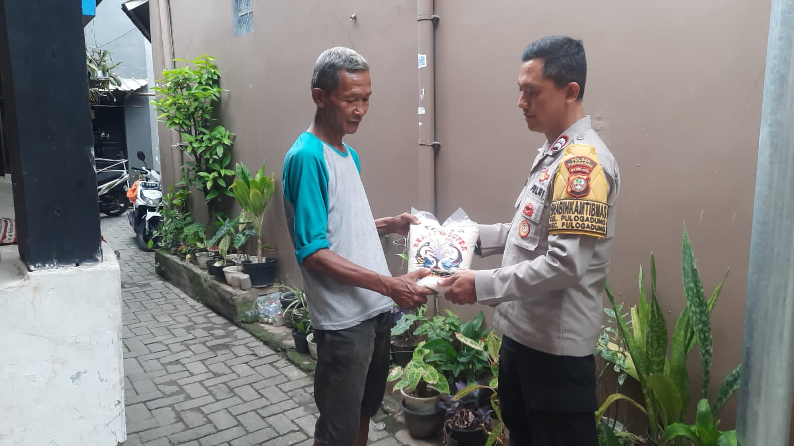 Jakarta – Sebagai bentuk kepedulian kepada masyarakat, Bhabinkamtibmas Polsek Pulogadung Polres Metro Jaktim Aiptu Kurniawan menyerahkan bantuan sosial kepada masyarakat yang membutuhkan di wilayahnya. Senin (23/09/24) siang.