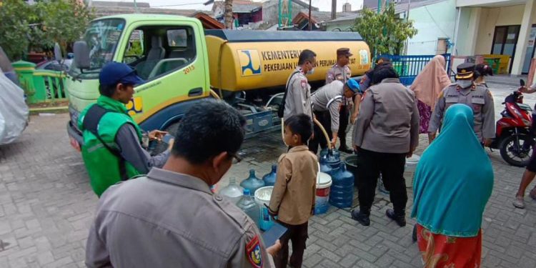 Melalui kerjasama dengan PDAM Tirta Patriot, Polsek Bekasi Utara secara berkesinambungan melakukan pembagian air bersih dengan menggunakan truk air yang disiapkan Tirta Patriot seperti yang dilakukan di Halaman Masjid Nurul Iman Rw 12 Perum Pondok Ungu Permai Kel Kaliabang Tengah Kec. Bekasi Utara.