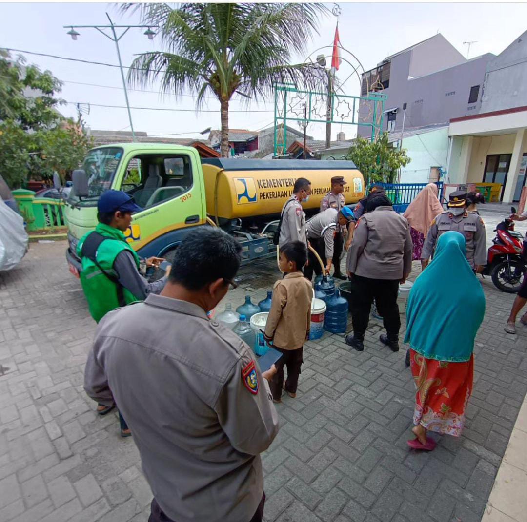 Melalui kerjasama dengan PDAM Tirta Patriot, Polsek Bekasi Utara secara berkesinambungan melakukan pembagian air bersih dengan menggunakan truk air yang disiapkan Tirta Patriot seperti yang dilakukan di Halaman Masjid Nurul Iman Rw 12 Perum Pondok Ungu Permai Kel Kaliabang Tengah Kec. Bekasi Utara.
