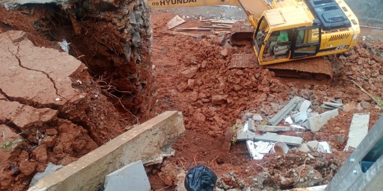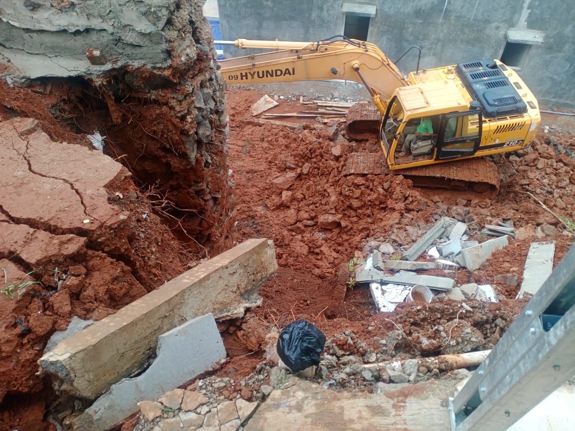 Pihak perumahan segera mendatangkan alat berat ke lokasi untuk melakukan pengerjaan guna mengatasi dampak tanah longsor.