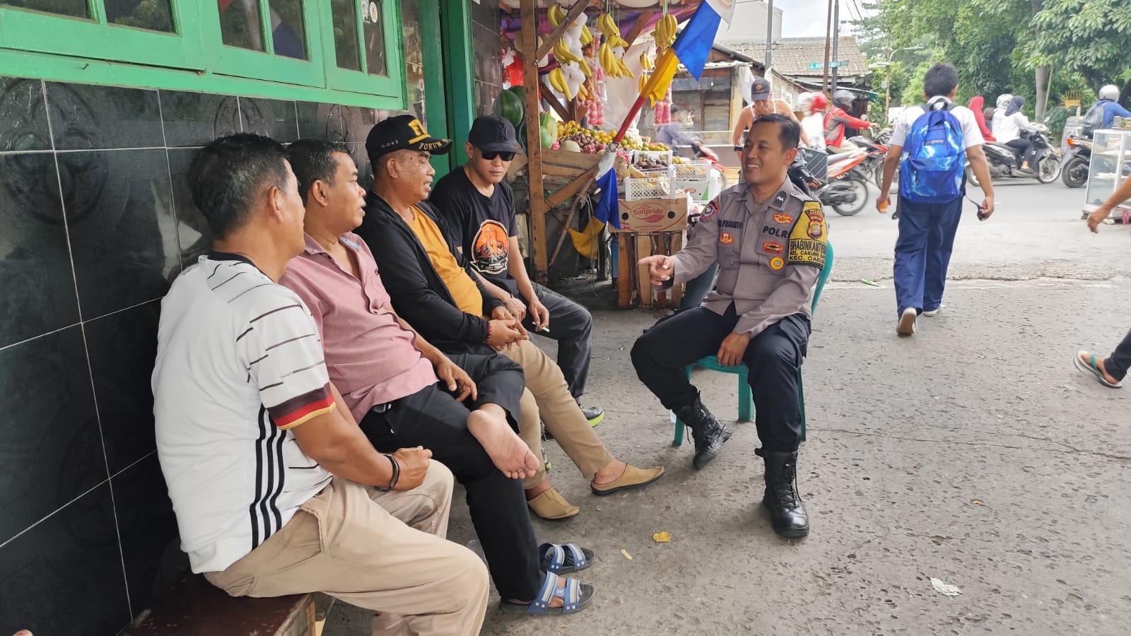 Dalam kegiatan ini, Aipda Tri Pujian menyampaikan pesan-pesan Kamtibmas kepada warga sekitar, menekankan pentingnya menjaga keamanan dan ketertiban lingkungan.