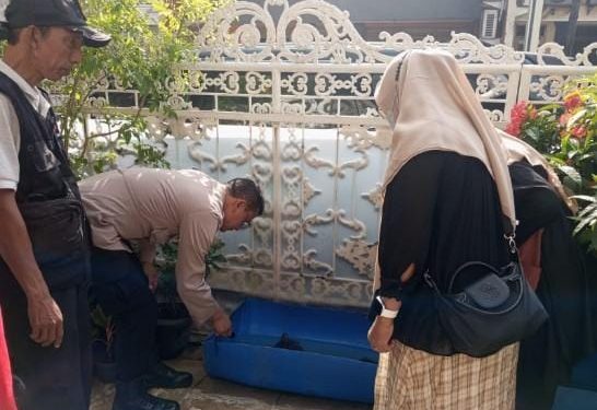 Jakarta Pusat — Guna mencegah penyebaran penyakit demam berdarah dengue (DBD) di musim pancaroba, jajaran Polsek Cempaka Putih melalui Bhabinkamtibmas Kelurahan Cempaka Putih Timur Aipda Wisnu Saputra bersama unsur tiga pilar dan masyarakat melaksanakan kegiatan Pemberantasan Sarang Nyamuk (PSN), Selasa (8/7/2025)