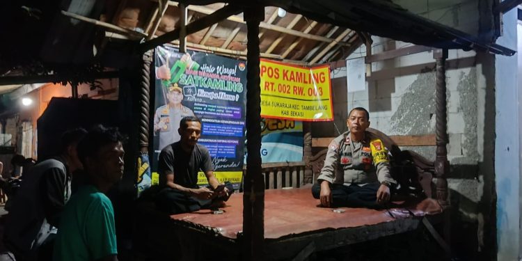 Bekasi — Upaya menjaga keamanan dan ketertiban masyarakat terus dilakukan Polsek Tambelang. Pada Rabu (26/11/2025) malam, Bhabinkamtibmas Desa Sukaraja, Aipda Kandi Wijaya, melaksanakan kegiatan kunjungan Door to Door System (DDS) ke Poskamling Kampung Petecina RT 002 RW 003, Desa Sukaraja, Kecamatan Tambelang, Kabupaten Bekasi.