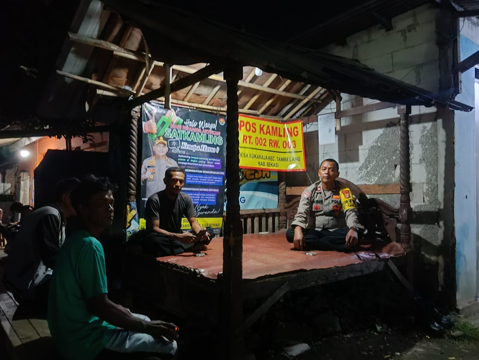 Bekasi — Upaya menjaga keamanan dan ketertiban masyarakat terus dilakukan Polsek Tambelang. Pada Rabu (26/11/2025) malam, Bhabinkamtibmas Desa Sukaraja, Aipda Kandi Wijaya, melaksanakan kegiatan kunjungan Door to Door System (DDS) ke Poskamling Kampung Petecina RT 002 RW 003, Desa Sukaraja, Kecamatan Tambelang, Kabupaten Bekasi.