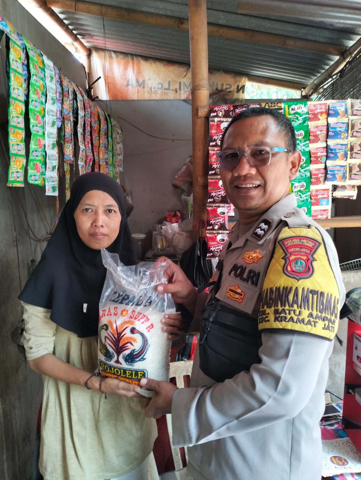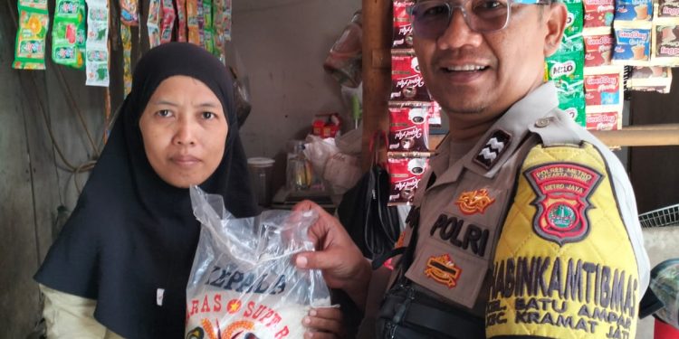 Jakarta – Dalam kunjungan dan sambangnya, Bhabinkamtibmas Polsek Kramatjati secara door to door datang memberikan bantuan berupa beras.
