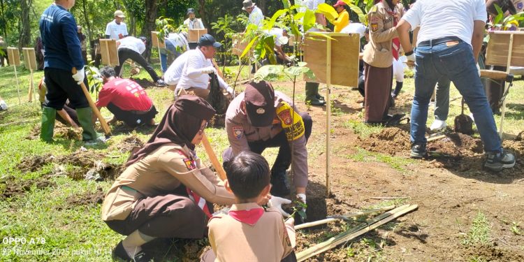Bekasi — Komitmen kepolisian dalam menjaga kelestarian lingkungan dan mempererat hubungan dengan masyarakat kembali diwujudkan melalui kegiatan penanaman seribu pohon yang dipimpin langsung oleh Bhabinkamtibmas Desa Karang Mulya, Aipda Ade Suherman, pada Sabtu (22/11/2025) di Buper Karangkitri, Kecamatan Bojongmangu, Kabupaten Bekasi.
