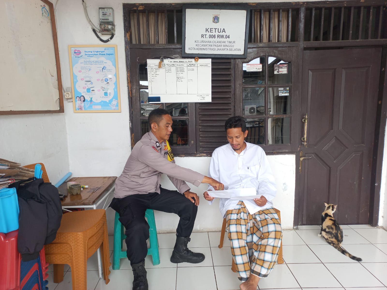 Dalam rangka memastikan kondusifitas dan keamanan wilayah jelang Bulan Suci Ramadhan, Aiptu Andri Abdillah, seorang Bhabinkamtibmas dari Kelurahan Cilandak Timur, Pasar Minggu, Jakarta Selatan, melakukan kunjungan sambang ke tokoh agama Bapak Muklani. Kunjungan tersebut dilakukan di kediaman Bapak Muklani yang terletak di Jalan Benda Rt.06/04, Kelurahan Cilandak Timur.