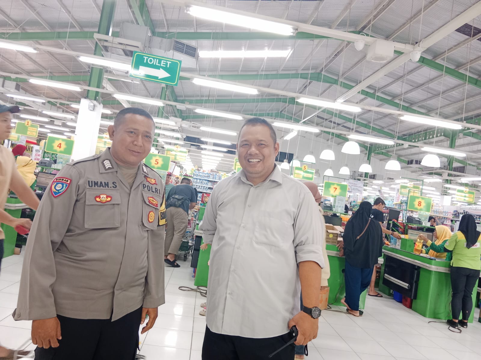 Tangerang Selatan — Selasa, 12 Maret 2024, Bhabinkamtibmas Kelurahan Cipayung dari Polsek Ciputat Timur, Bripka Uman Siswanto, melaksanakan kunjungan ke Swalayan Tip Top Ciputat.