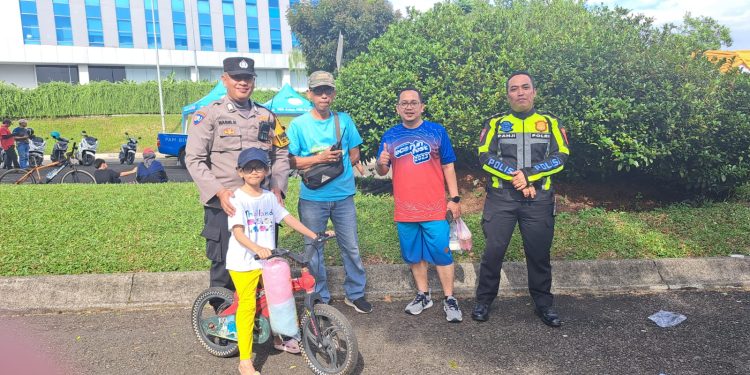 Guna memberikan rasa aman kepada masyarakat pada acara car free day, Polres Tangerang Selatan mengerahkan personelnya untuk melaksanakan pengamanan bergabung dengan Dishub dan satuan pengamanan (Satpam) Bintaro.
