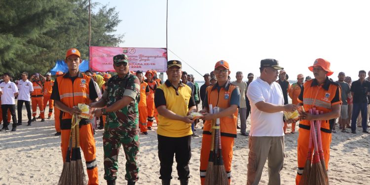 Jakarta – Dalam rangka memperingati Hari Bhayangkara ke-78, Bhayangkara Polda Metro Jaya secara serentak mengadakan kegiatan bersih-bersih dan pembagian sembako serta alat kebersihan yang melibatkan seluruh elemen masyarakat dan instansi pemerintah di wilayah Polres Kepulauan Seribu, Minggu (23/06/2024). Kegiatan ini dipimpin langsung oleh Kapolres Kepulauan Seribu AKBP Jarot Sungkowo, S.H., S.I.K.