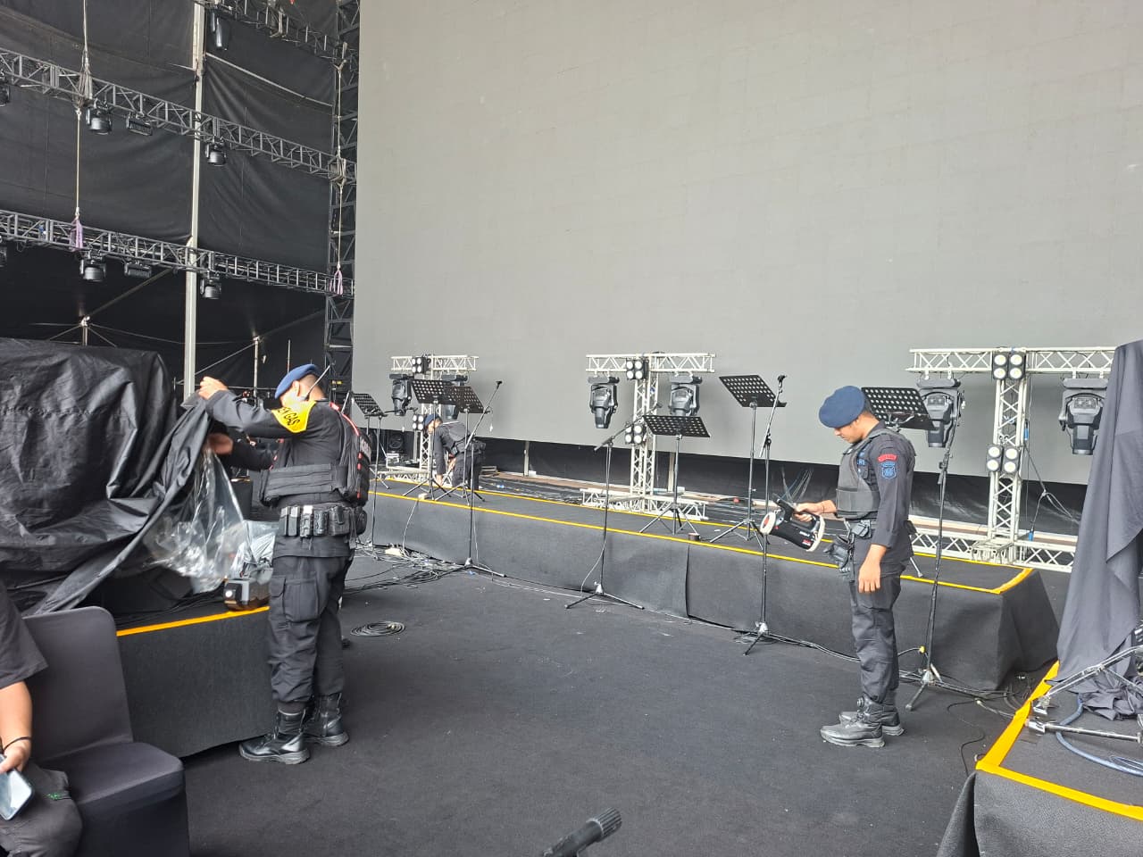 Dipimpin Ipda Yudha Pratama, operasi dimulai pukul 10.00 WIB. Tim melakukan pemeriksaan menyeluruh ke berbagai titik vital, mulai dari panggung utama, backstage, FOH, area VVIP dan VIP, tribun penonton, hingga fasilitas umum seperti toilet. Hasilnya, tidak ditemukan adanya bahan peledak maupun ancaman keamanan lainnya.