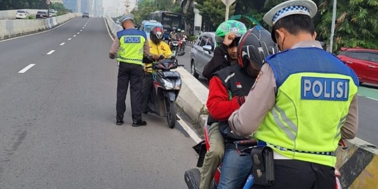 Jakarta – Polres Metro Jakarta Selatan menyiagakan personel di jalan layang non-tol (JLNT) Casablanca untuk mengantisipasi pengendara sepeda motor yang nekat melintasi ruas jalan tersebut.