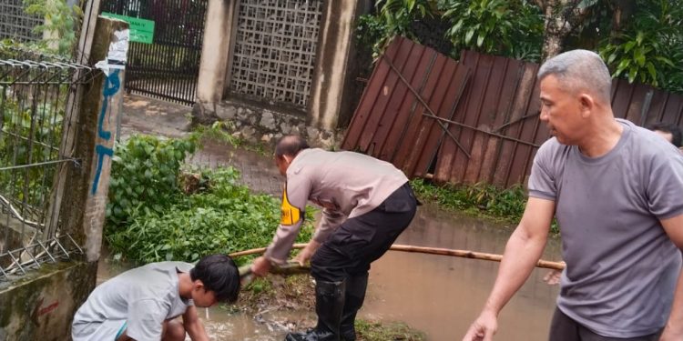 Tangerang Selatan – Menyikapi hujan deras yang mengguyur wilayah Kecamatan Curug, Kabupaten Tangerang, Bhabinkamtibmas Desa Cukanggalih, Aipda Sudirta, dengan sigap turun langsung ke lokasi untuk melakukan pemantauan genangan air di Perumahan CMC2 RT 10. Kehadiran beliau menjadi bentuk nyata kehadiran Polri di tengah masyarakat saat dibutuhkan, terutama dalam situasi yang berpotensi menimbulkan gangguan kenyamanan dan keselamatan warga. (07/07)
