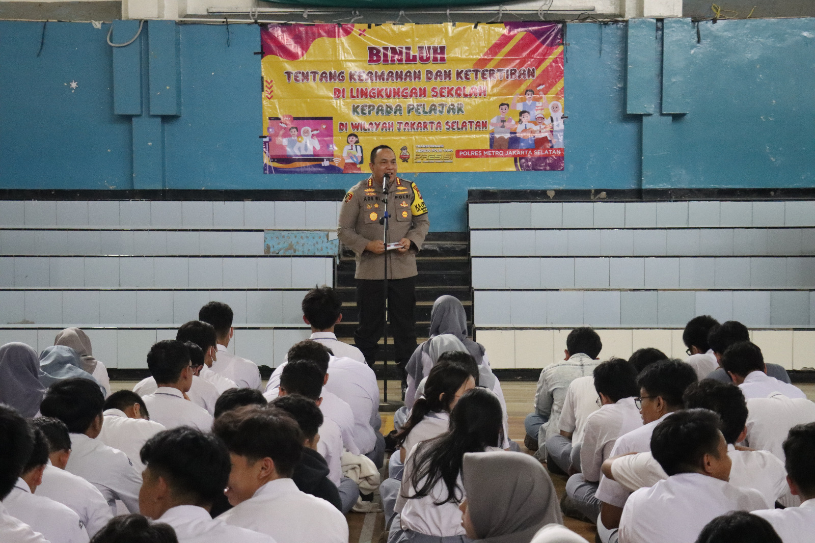 Jakarta – Dalam rangka memberikan edukasi tentang “Stop Bullying” dan pencegahan kekerasan di lingkungan sekolah, Kapolres Metro Jakarta Selatan Kombes Pol. Ade Rahmat Idnal bersama Kasat Binmas Polres Metro Jakarta Selatan dan sejumlah artis ibukota turun langsung di SMP dan SMA Labschool, Jl. Kh Ahmad Dahlan Jakarta Selatan. Senin (26/2/2024).