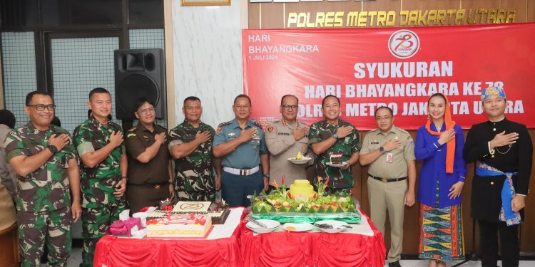 JAKARTA – Polres Metro Jakarta Utara menggelar tasyakuran di lobby Mapolres dalam rangka hari Bhayangkara ke-78, Senin (1/7/2024).