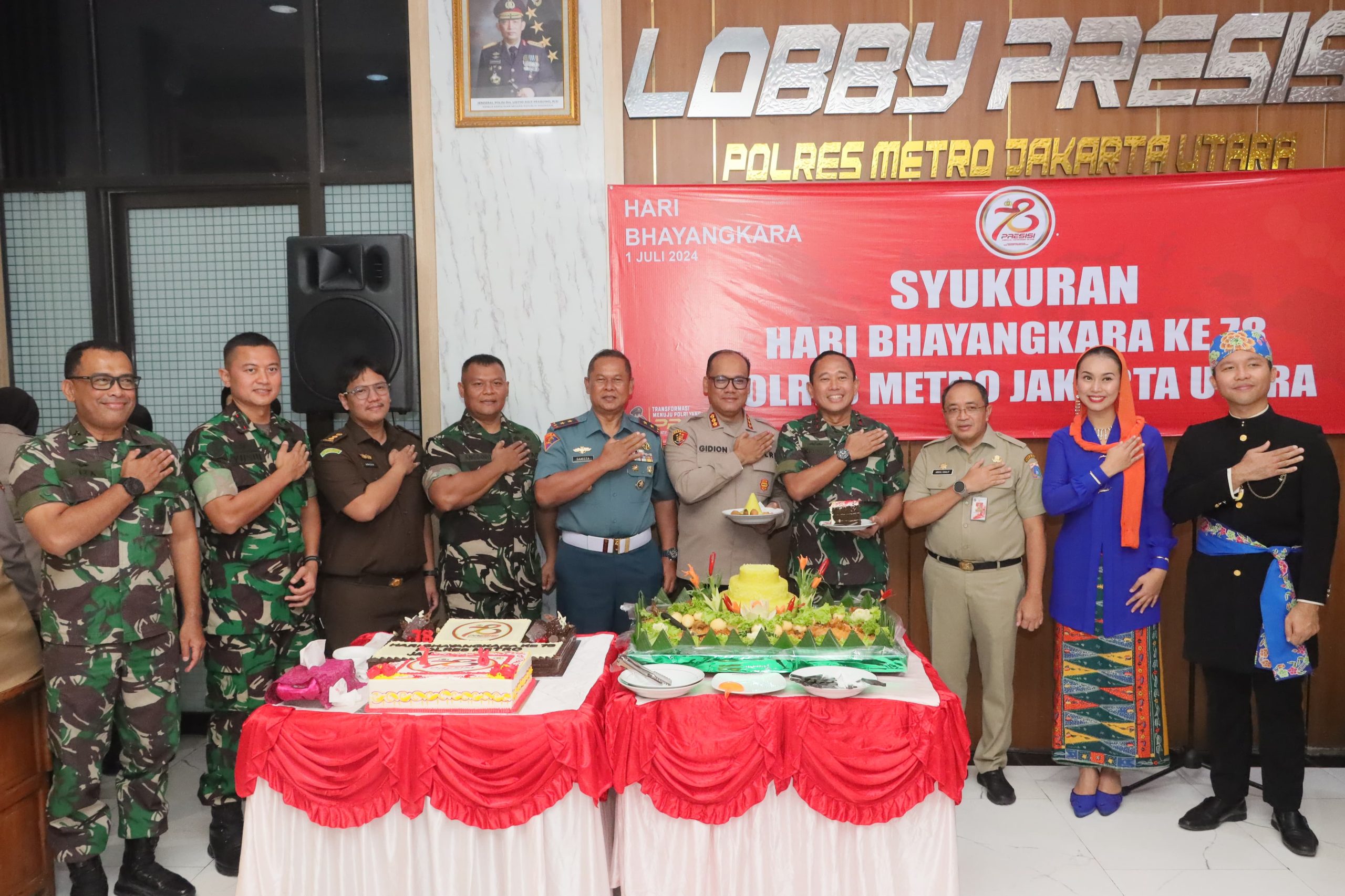 JAKARTA – Polres Metro Jakarta Utara menggelar tasyakuran di lobby Mapolres dalam rangka hari Bhayangkara ke-78, Senin (1/7/2024).