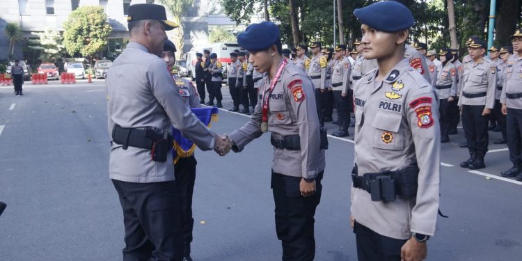 Dalam kesempatan tersebut Wakapolda Metro Jaya Brigjen Pol. Suyudi Ario Seto mewakili Kapolda Metro Jaya memberikan ucapan selamat selanjutnya mengalungkan medali secara langsung kepada 2 personel yang berprestasi.