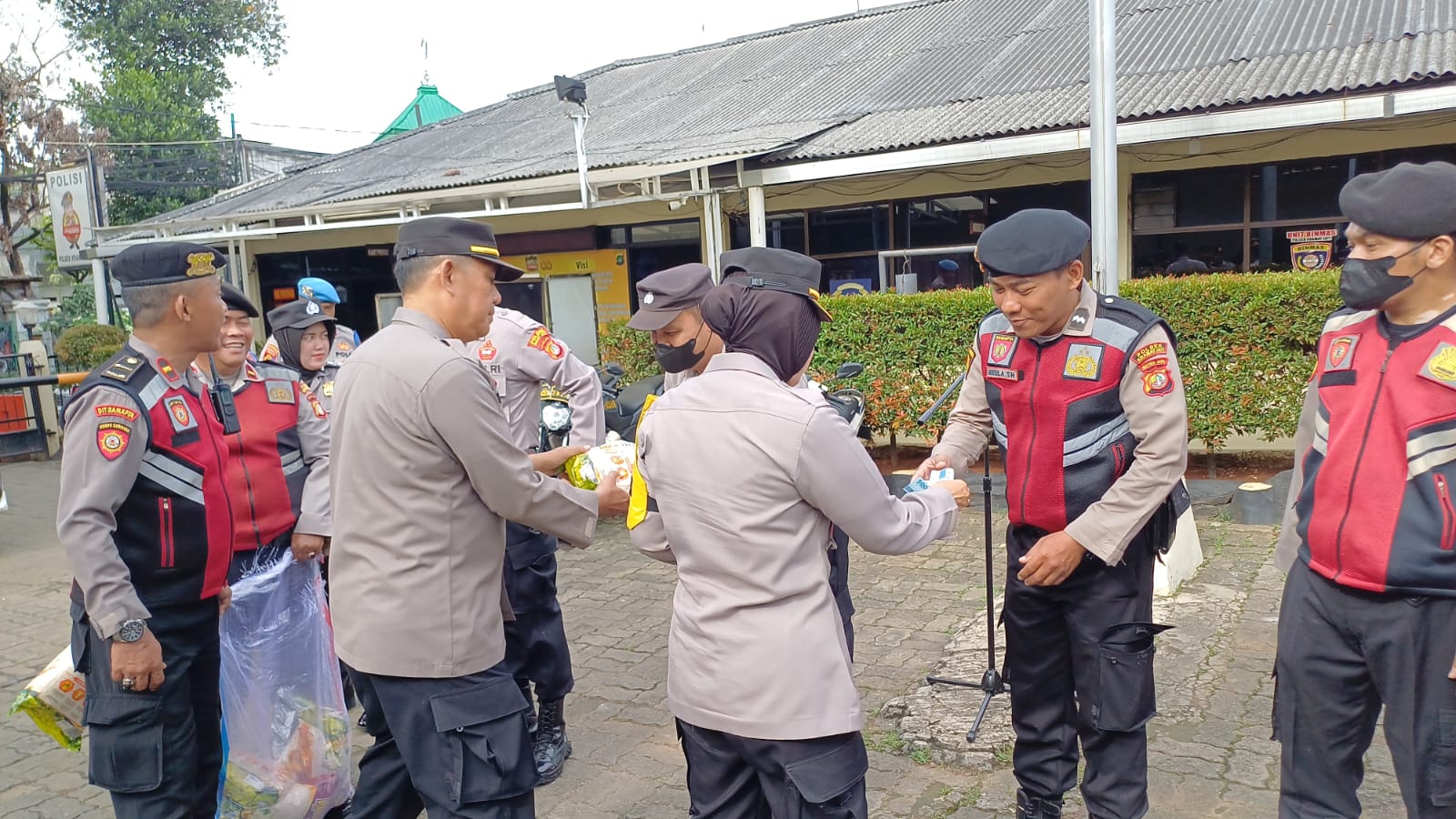 Dalam kegiatan Jumat barokah tersebut Kapolsek Kramatjati memberikan beras kepada Personil Polsek Kramatjati.