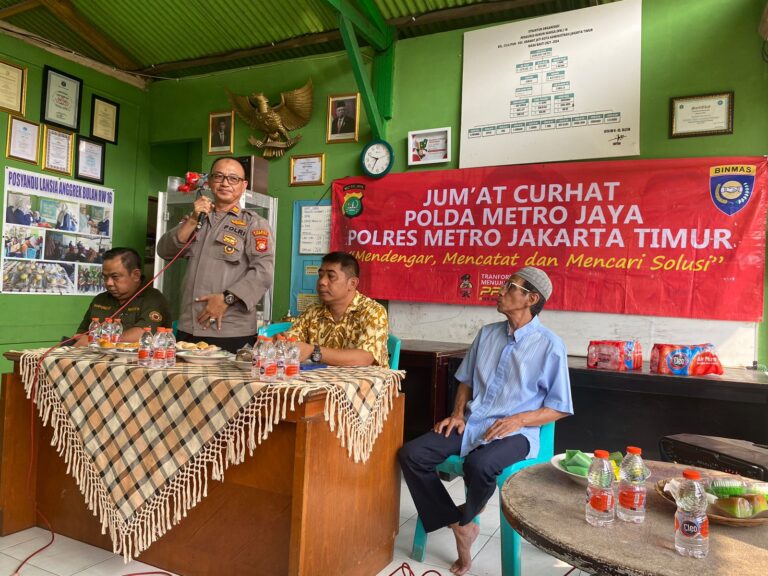 Jakarta – Kepolisian Sektor Kramatjati melakukan kegiatan Jumat Curhat di Sekretariat RW 016 Jl. Ciliwung RT 05/016 Kel. Cililitan Kec. Kramatjati Jakarta Timur, pada Jumat (17-05-2024).Sore
