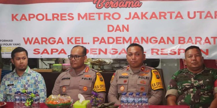 Jakarta – Kapolres Metro Jakarta Utara Kombes Pol Gidion Arif Setyawan didampingi Waka Polres Metro Jakarta Utara AKBP Wiraga Dimas Tama kembali melakukan kegiatan Jumat Curhat bersama dengan warga Kel. Pademangan Barat Kec. Pademangan Jakarta Utara yang berlangsung di Polsubsektor Pademangan Barat, Jalan Ampera Besar Kel. Pademangan Barat Kec. Pademangan Jakarta Utara. Jumat (08/3/24).