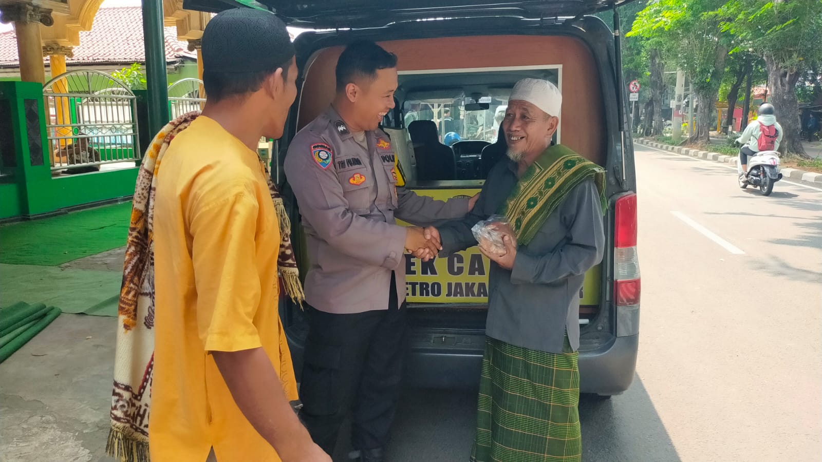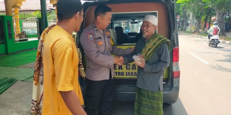 Jakarta – Dalam Jumat peduli personi Polsek Cakung rutin melakukan kegiatan jumat Peduli dengan, membagikan Snack dan makanan gratis bagi para jemaah yang selesai melaksanakan sholat Jumat.