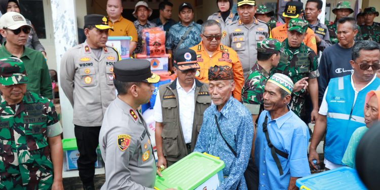 Setelah meninjau lokasi longsor, Kapolda Jabar menuju Kantor Desa Sukamaju untuk menyerahkan bantuan sosial berupa kebutuhan sandang dan pangan kepada warga yang terdampak. Bantuan ini merupakan bagian dari upaya kepolisian untuk meringankan beban para korban bencana.