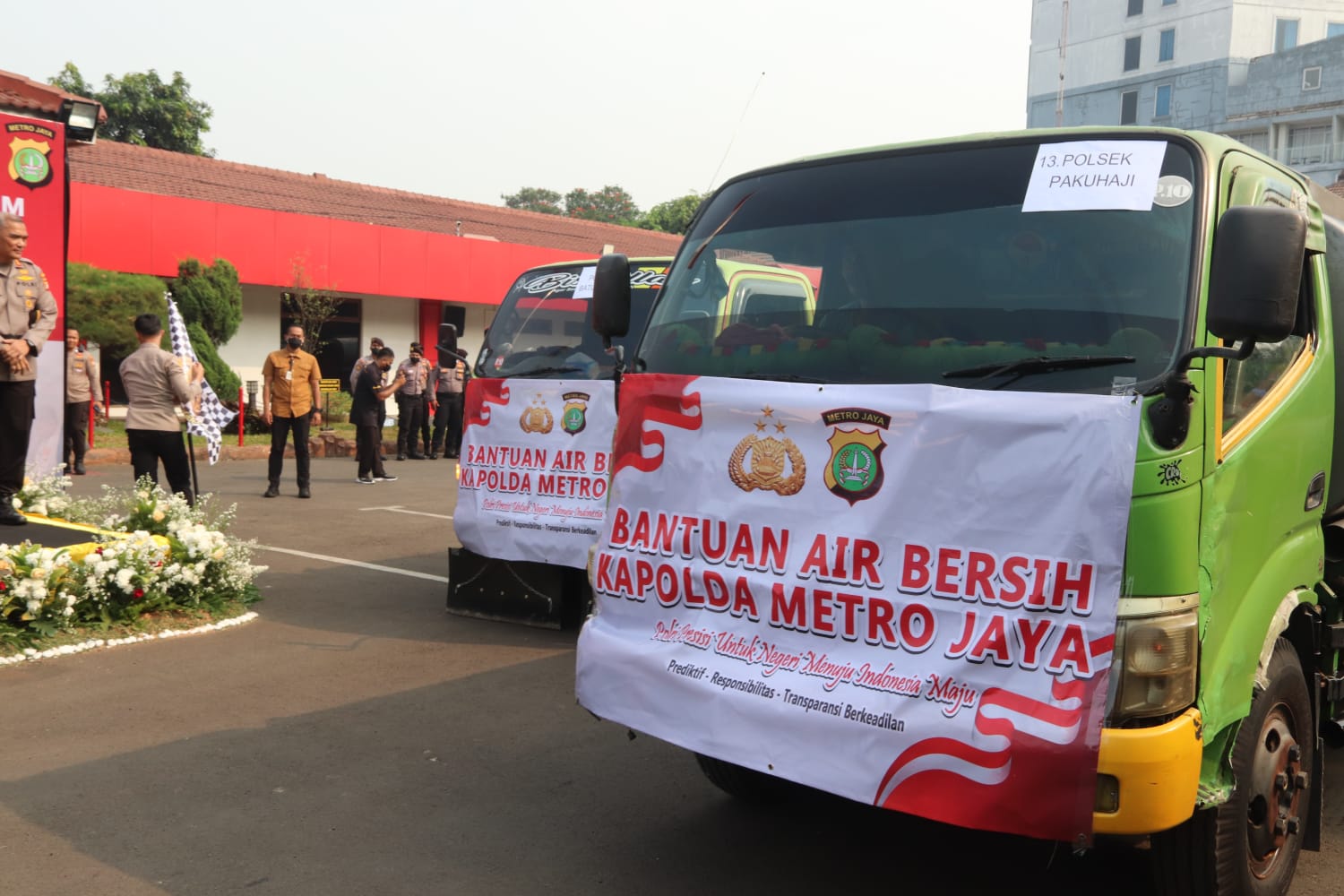 Selain itu, secara simbolis Irjen Karyoto melepas pemberian bantuan Air Bersih ke 24 titik di Wilayah Hukum Polres Metro Tangerang Kota Sebagai bentuk kepedulian Polri terhadap lingkungan.