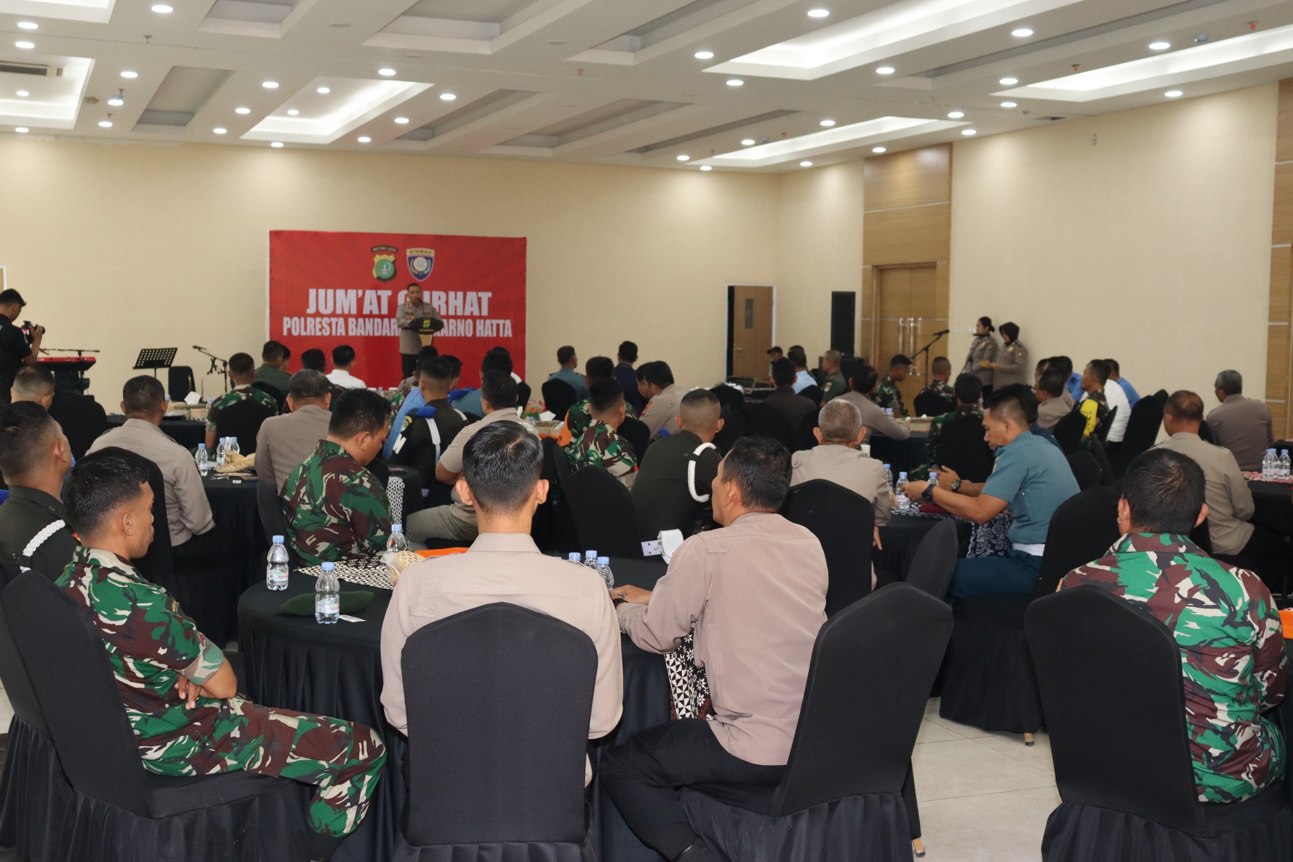 Tangerang – Polresta Bandara Soekarno-Hatta (Soetta) menggelar program “Jumat Curhat” bersama TNI dan Angkasa Pura II dalam rangka menyambut Hari Bhayangkara ke-78 tahun 2024 pada Jumat (21/6/24) siang.