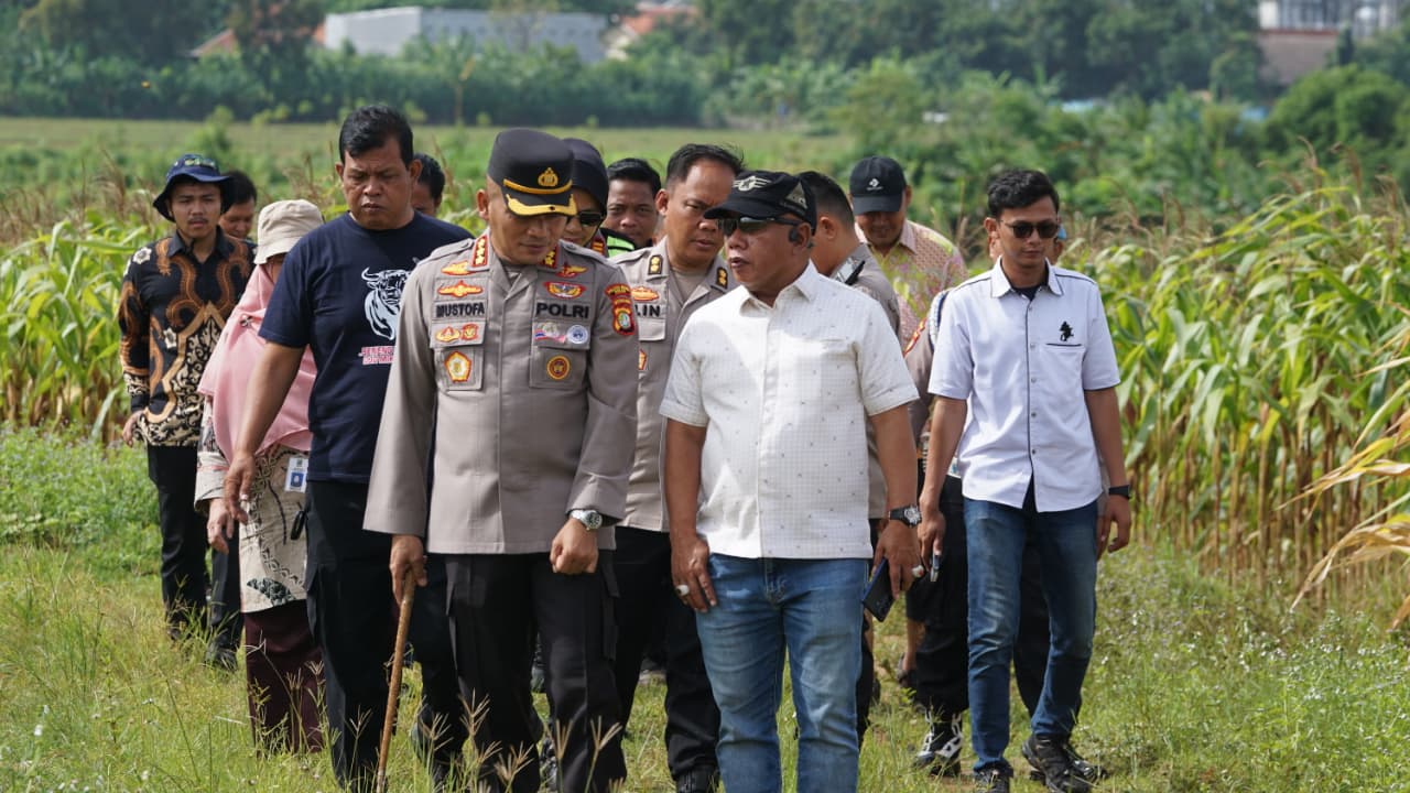 Bekasi — Kapolres Metro Bekasi KBP Mustofa, S.I.K., M.H. melakukan pengecekan langsung lahan jagung Program Ketahanan Pangan Polda Metro Jaya yang berlokasi di Jl. Langkawi, Kampung Tembong Gunung, Desa Sukamahi, Kecamatan Cikarang Pusat, Kabupaten Bekasi, Kamis (18/12/2025).