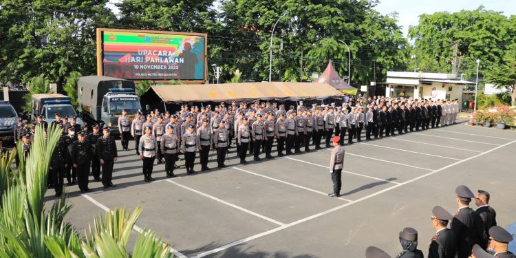 Kota Bekasi – Polres Metro Bekasi Kota menggelar upacara bendera dalam rangka memperingati Hari Pahlawan Tahun 2025. Upacara dilaksanakan secara khidmat di halaman Mapolres Metro Bekasi Kota pada Senin, (10/11/ 2025), pukul 07.00 WIB.