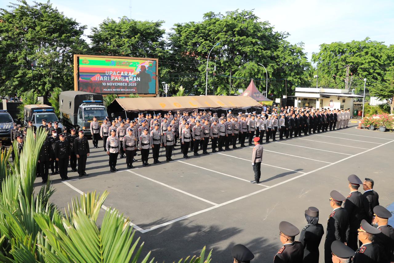 Dalam amanatnya, Kapolres Metro Bekasi Kota membacakan pesan tertulis dari Kapolda Metro Jaya, ditekankan bahwa peringatan Hari Pahlawan bukan sekadar seremoni, tapi sebagai pengingat agar semangat perjuangan para pahlawan terus hidup dalam sikap, tindakan, dan pengabdian sehari-hari anggota Polri.