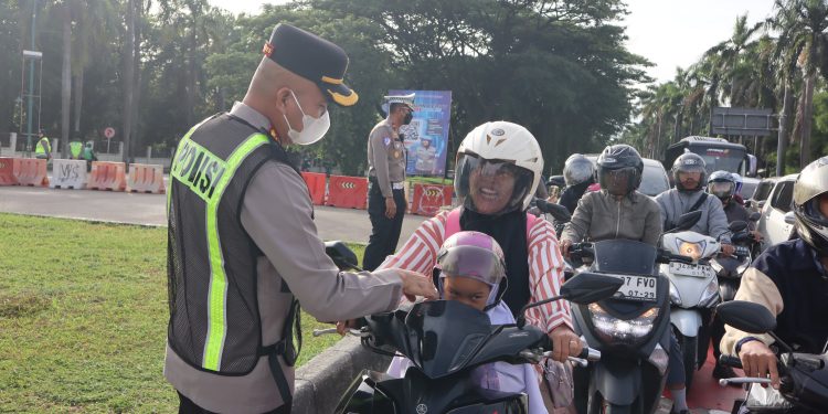 Dengan penuh semangat, jajaran Polres Metro Bekasi membantu mengatur arus lalu lintas di jam sibuk pagi, memastikan kelancaran bagi para pengendara dan keselamatan masyarakat yang melintas. Tak hanya fokus pada pengaturan lalu lintas, Kapolres juga menunjukkan kepedulian sosial dengan membagikan susu kotak kepada anak-anak sekolah yang menyeberang jalan, sebuah tindakan kecil namun penuh makna yang menggambarkan wajah Polri yang humanis dan peduli terhadap generasi muda.