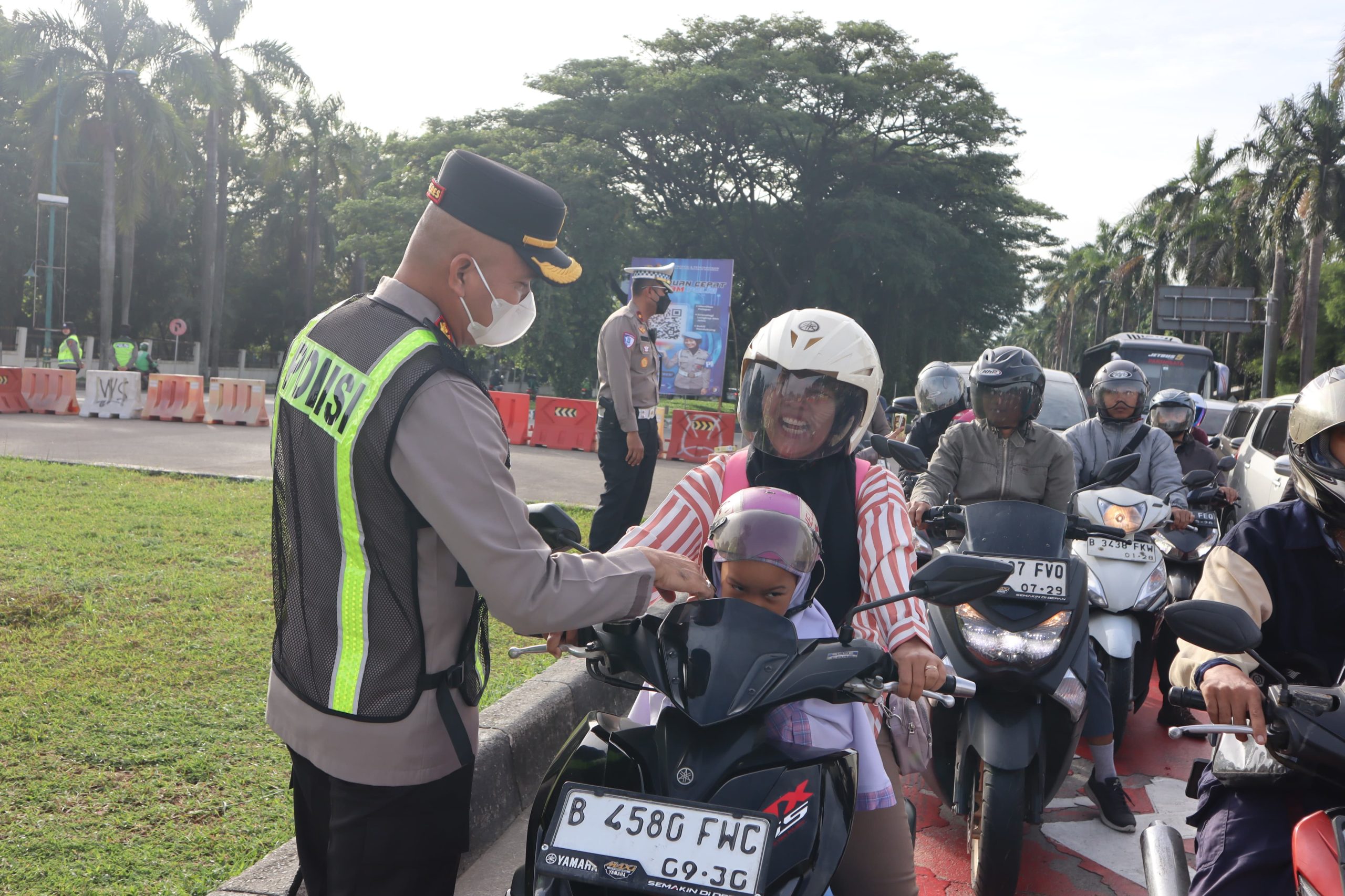 Dengan penuh semangat, jajaran Polres Metro Bekasi membantu mengatur arus lalu lintas di jam sibuk pagi, memastikan kelancaran bagi para pengendara dan keselamatan masyarakat yang melintas. Tak hanya fokus pada pengaturan lalu lintas, Kapolres juga menunjukkan kepedulian sosial dengan membagikan susu kotak kepada anak-anak sekolah yang menyeberang jalan, sebuah tindakan kecil namun penuh makna yang menggambarkan wajah Polri yang humanis dan peduli terhadap generasi muda.
