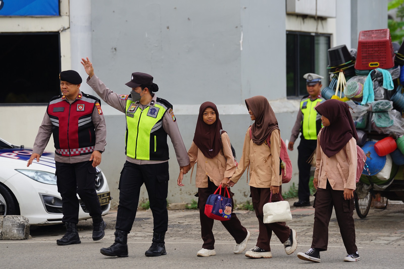 Momen hangat juga terlihat ketika Kapolres memberikan susu kotak kepada anak-anak sekolah yang hendak menyeberang jalan. Senyum ceria mereka menjadi gambaran indah dari hubungan humanis antara polisi dan masyarakat.