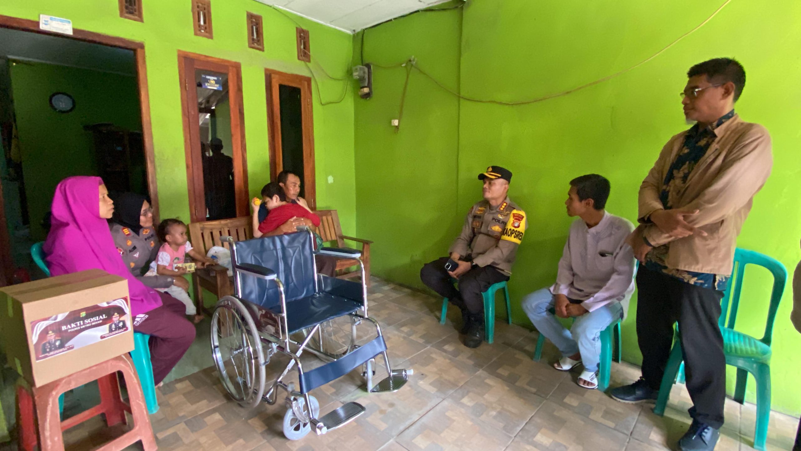Bekasi — Wujud kepedulian Polri terhadap masyarakat kembali ditunjukkan Kapolres Metro Bekasi KBP Mustofa, S.I.K., M.H. melalui kegiatan Bakti Kesehatan berupa pemberian kursi roda kepada seorang penyandang disabilitas di Desa Waluya, Kecamatan Cikarang Utara, Kamis (27/11/2025).