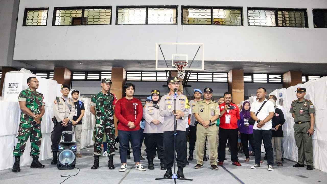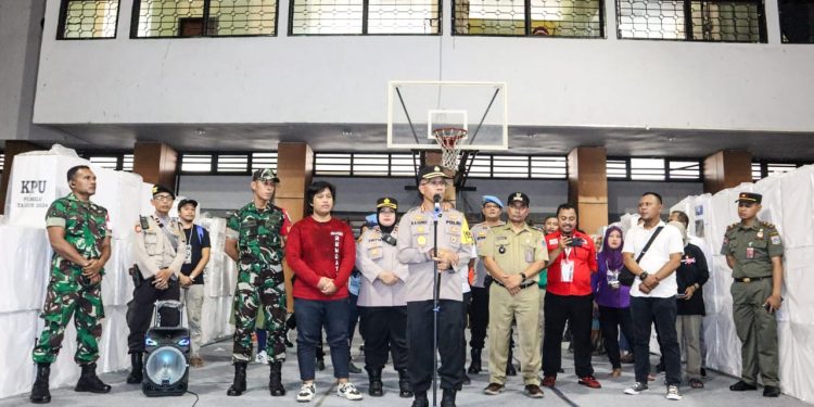 Jakarta – Kapolres Metro Jakarta Timur Kombes Pol. Nicolas Ary Lilipaly, S.I.K, M.H, M.Si melakukan pengecekan berdialog dengan Panitia Pemilihan Kecamatan (PPK) serta Personil Pengamanan unruk mendapatkan informasi langsung terkait pelaksanaan pemilihan dan penghitungan surat suara pada masing – masing wilayah.