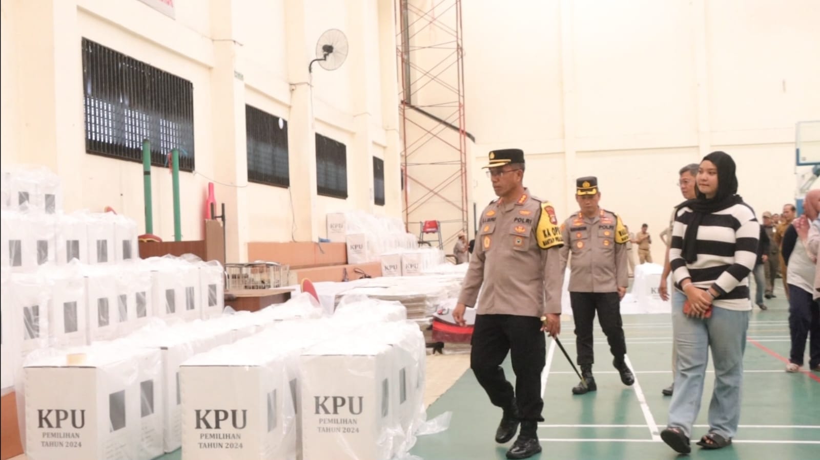 Jakarta – Kapolres Metro Jakarta Timur, Kombes Pol Nicolas Ary Lilipaly, S.I.K, M.H, M.S.I, melakukan kunjungan ke Gudang Logistik Panitia Pemilihan Kecamatan (PPK) di Rusun PIK B1, Kelurahan Penggilingan, Kecamatan Cakung, Jakarta Timur dan Gudang Logistik PPK Matraman bertempat di GOR Matraman Kelurahan Utan Kayu Utara Jakarta Timur.