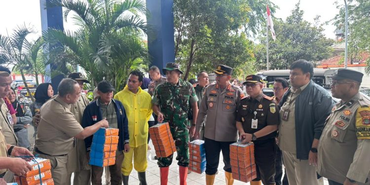 Dalam kunjungan tersebut, Forkopimko menyalurkan bantuan logistik kepada para pengungsi yang terdampak banjir.