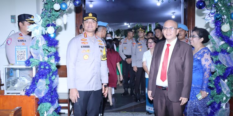 Jakarta Barat – Dalam suasana penuh damai dan sukacita perayaan Hari Natal, Kapolres Metro Jakarta Barat Kombes Pol M Syahduddi melaksanakan kunjungan ke sejumlah gereja untuk memastikan ibadah berjalan dengan aman dan lancar.